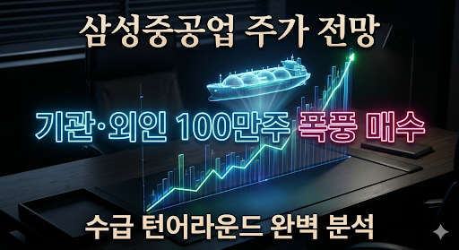 오늘은 차트상으로 완벽한 턴어라운드를 시도하고 있는 삼성중공업의 현재 상황과, 개인 투자자들은 절대 모르는 기관과 외국인의 거대한 수급 이탈 현상을 딥다이브(Deep-dive) 해보겠습니다. 진정한 수익은 대자본의 등에 올라탈 때 나옵니다. 지금 바로 시작합니다! 🧐🔍