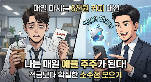 📌 매일 마시는 6천 원짜리 커피 대신 '애플' 주주 되기! 직장인 소액 소수점 투자 & 수수료 무료 계좌 세팅법 ☕📈