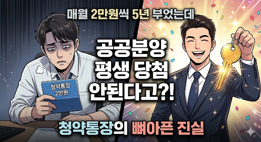 오늘 점심시간, 회사 휴게실이 발칵 뒤집혔습니다. 입사 동기인 박 대리가 수도권 공공분양 아파트 청약에 당첨되어 커피를 쏘겠다고 선언했기 때문입니다. 부러움에 배가 아픈 김 대리가 말합니다. "나도 취업하자마자 주택청약종합저축 만들어서 매달 2만 원씩 5년째 꼬박꼬박 붓고 있는데, 내 차례는 언제 오려나?"
