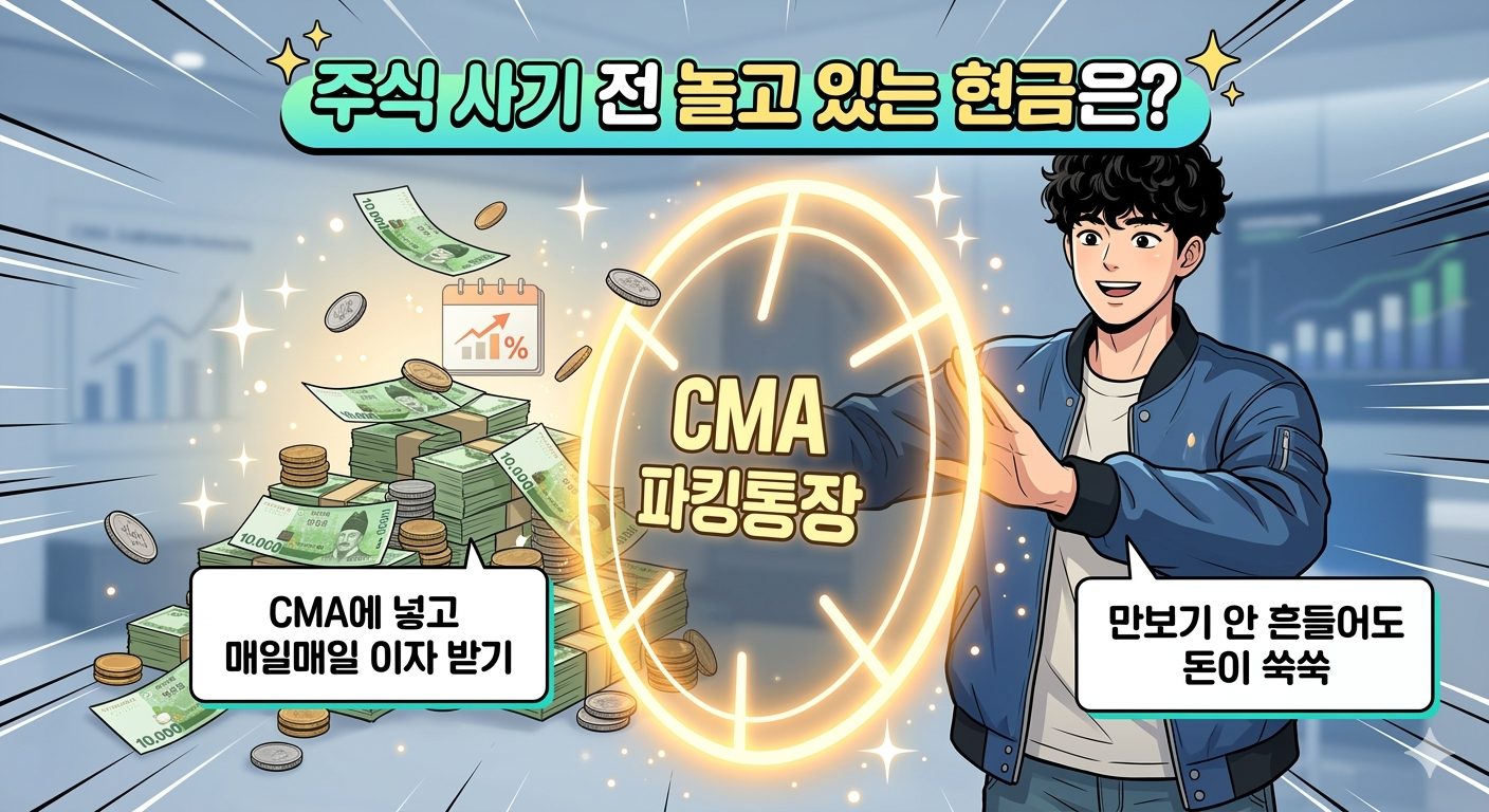 또한, 아직 주식을 사지 않고 증권 계좌에 대기 중인 투자 원금은 이자가 0%인 곳에 방치하면 안 됩니다. 비대면 계좌 개설 시 함께 만들어지는 'CMA 파킹통장'에 돈을 넣어두십시오. 만보기를 흔들지 않아도 단 하루만 맡기면 시중 은행보다 높은 이자가 매일매일 내 계좌로 굴러들어오는 기적을 경험하게 됩니다.