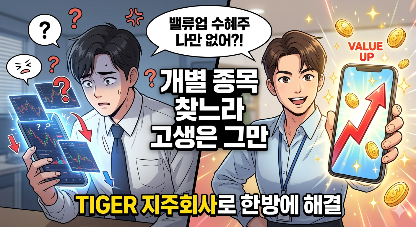 최근 주식 시장의 메가 트렌드는 단연 '자사주 소각'입니다. 하지만 어떤 기업이 언제 소각할지 개미들이 일일이 예측하기란 불가능에 가깝죠. 오늘은 복잡한 개별 종목 분석 없이, 대한민국 상위 1% 대기업들의 주주환원 파티에 VIP로 참석할 수 있는 'TIGER 지주회사(307520)' ETF의 매력과, 스마트폰으로 당장 세팅하는 3분 실전 가이드를 웹툰처럼 생생하게 파헤쳐 보겠습니다 🧐🔍