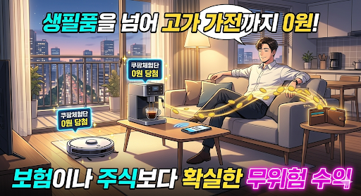 마트 영수증을 보며 한숨 쉬던 김 대리. 다음 날 점심시간, 이 한탄을 들은 옆자리 박 과장이 스마트폰 화면을 보여주며 씩 웃습니다. "김 대리야, 난 휴지, 쌀, 영양제 심지어 에어프라이어까지 내 돈 주고 산 지 1년 넘었다. 전부 쿠팡에서 공짜로 보내주거든!"