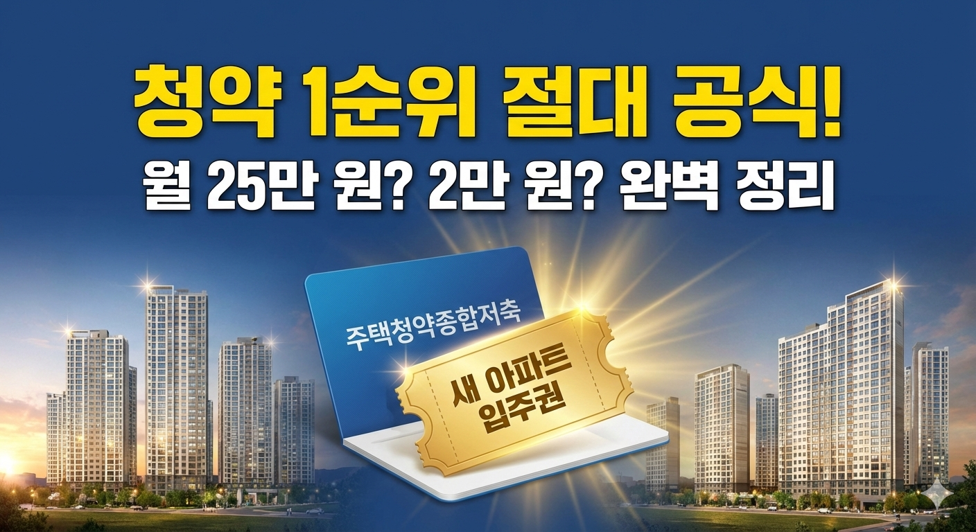오늘은 복잡한 청약 제도를 싹 다 빼고, 초보자 눈높이에서 **'무조건 1순위 만드는 공식'**과 **'가장 유리한 월 납입 금액'**을 아주 명쾌하게 정리해 드립니다. 이 글만 읽으시면 내 집 마련의 절반은 이미 성공하신 겁니다!