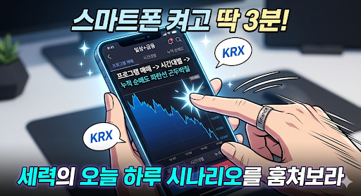 🌙 오늘 퇴근길, 여러분이 물려있는 종목의 오늘 자 '프로그램 매매' 차트를 열어보십시오. 혹시 나 혼자 기계의 폭격에 맞서며 외로운 싸움을 하고 있었던 것은 아닌지 차분히 복기해 보시길 바랍니다. 주말에는 주식 스트레스 훌훌 털어버리시고, 다음 주 월요일부터는 터미네이터와 싸우지 않고 그 등에 올라타는 스마트한 투자자로 거듭나시기를 진심으로 응원합니다!