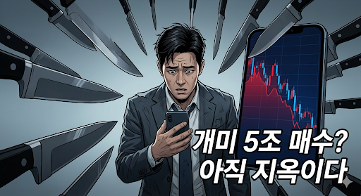 🏚️ 개인이 5조 넘게 순매수하며 억지로 떠받치는 시장은 모래성처럼 위태롭다.