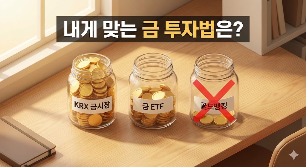 결론을 깔끔하게 요약해 드릴게요! 가장 세금을 아끼면서 수익을 극대화하고 싶다면 무조건 **'KRX 금시장'**이 정답입니다. 반대로 연금 계좌 안에서 다른 주식들과 함께 편하게 자산을 배분하고 싶으시다면 **'금 ETF'**를 선택하시면 됩니다. 골드뱅킹이나 실물 금은 쿨하게 패스하시고요! 🙅♀️