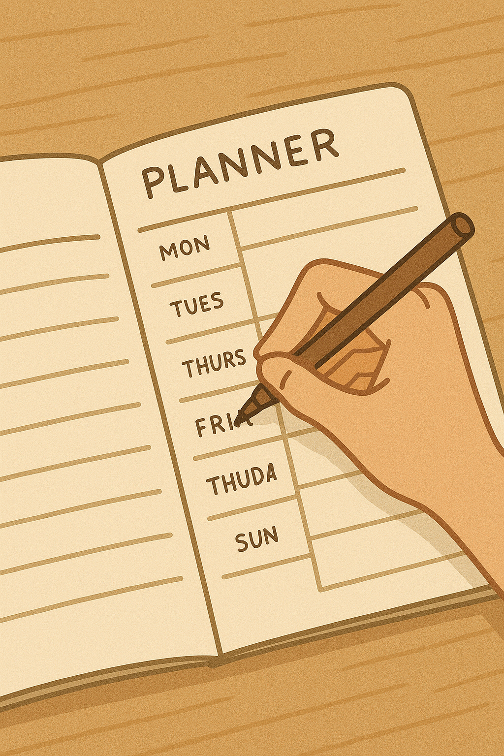 종이 플래너나 메모앱에 오늘 할 일 3가지를 적는 것만으로도 하루의 집중력이 달라집니다.