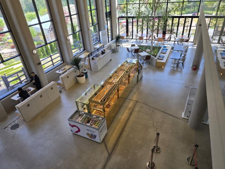 정원 내 위치한 3층 규모의 베이커리 카페 '베툴라'는 통유리창을 통해 사계절 정원의 모습을 감상할 수 있습니다. 아늑한 분위기와 함께 치즈 쌀식빵, 단호박 찰빵 등 정성 가득한 빵과 흑임자 라떼 등 다양한 음료를 즐길 수 있습니다. 테라스에 앉아 자연과 함께하는 커피 타임은 그야말로 힐링입니다.