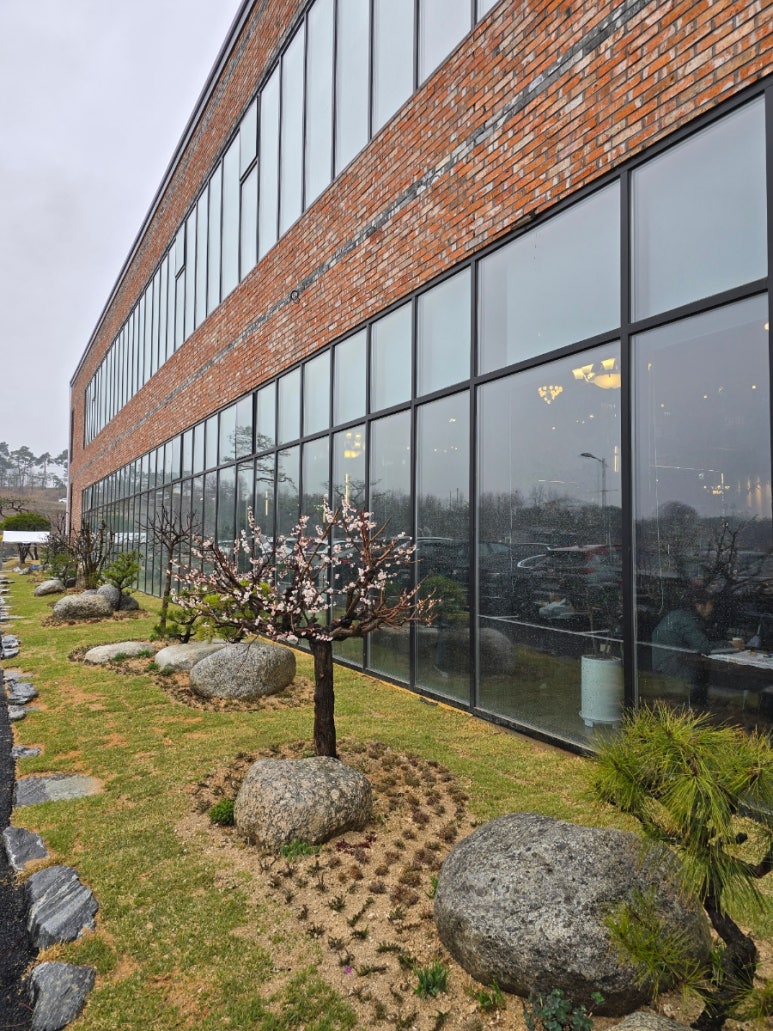 입구부터 정갈하게 꾸며진 정원과 간판, 그리고 유리 건물의 모던한 디자인이 멀리서도 돋보였답니다.