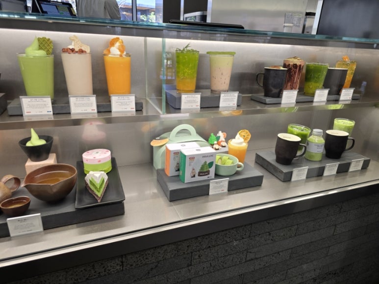 오설록에서는 쇼케이스 속 음료와 디저트들이 하나같이 예뻐요✨