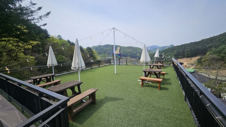 식사 후에는 넓은 애견 운동장에서 자유롭게 뛰놀 수 있습니다. 잔디밭이 잘 관리되어 있어 반려견들이 마음껏 달릴 수 있고, 루프탑에는 산책로도 마련되어 있어 보호자와 함께 조용히 걷기 좋습니다. 그야말로 힐링 그 자체!
