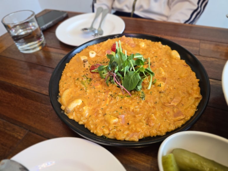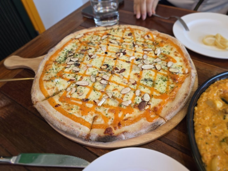 홍시는 애견 동반 식당이지만 음식 퀄리티가 정말 뛰어납니다. 고르곤졸라 피자, 베이컨 로제 리조또, 봉골레 비앙코 파스타까지 모두 정성스럽게 조리되어 제공돼요. 특히 피자는 꿀에 찍어 먹는 맛이 일품이고, 리조또는 쫀득하고 고소해 리조또 애호가들에게 추천합니다.