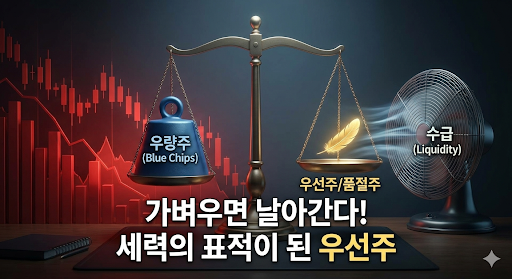 이때 단기 차익을 노리는 투기성 자금(세력)들은 아주 적은 돈으로도 주가를 쉽게 쥐락펴락할 수 있는 가벼운 종목을 타겟으로 삼습니다. 대주주 지분이 너무 높아서 시중에 유통되는 주식이 씨가 마른 **'품절주(양지사 등)'**나, 본주에 비해 시가총액이 턱없이 가벼운 **'우선주'**가 그 먹잇감이 되는 것이죠 🎯