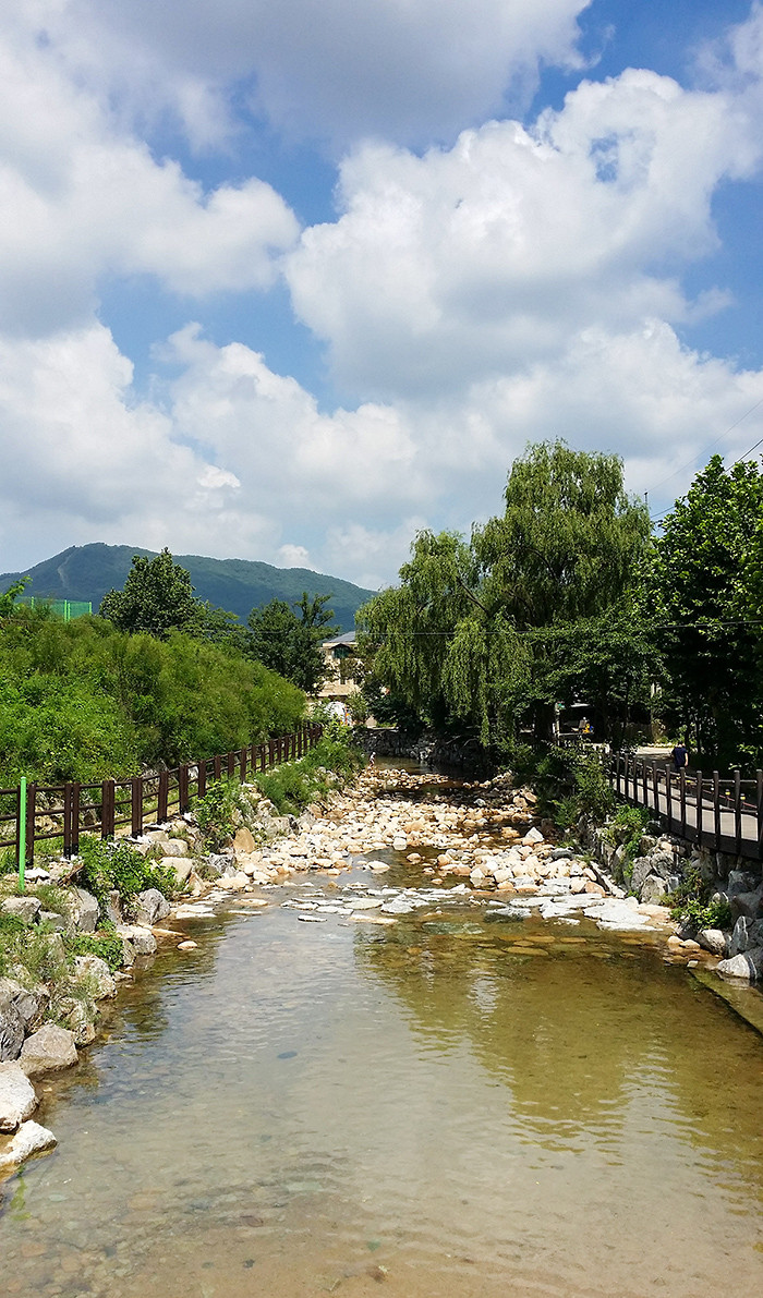 📸 사진 위치 제안: 계곡 돌다리 사이로 흐르는 물 사진